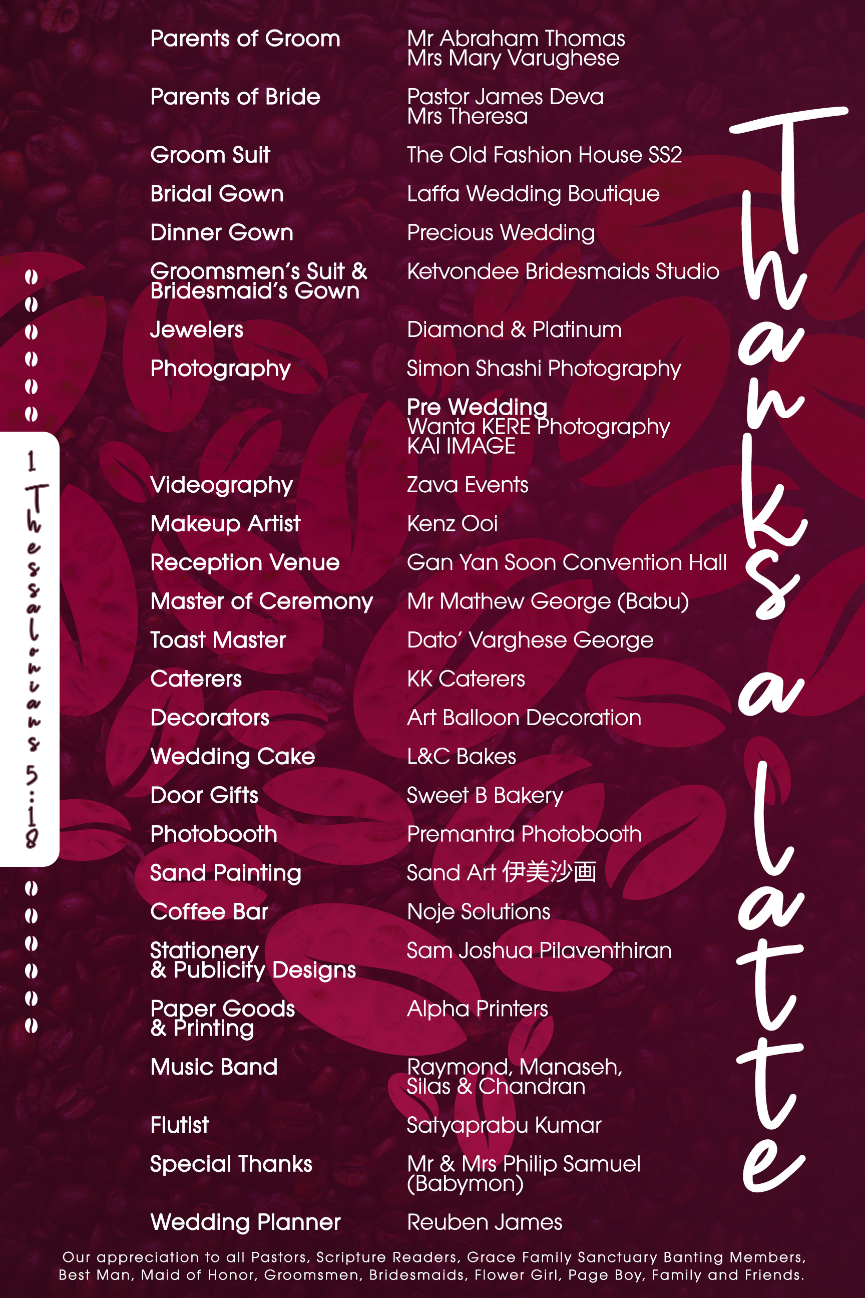 The compilation artworks I did for a coffee themed wedding.